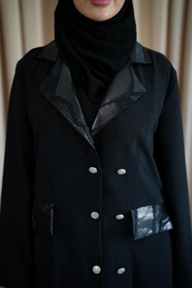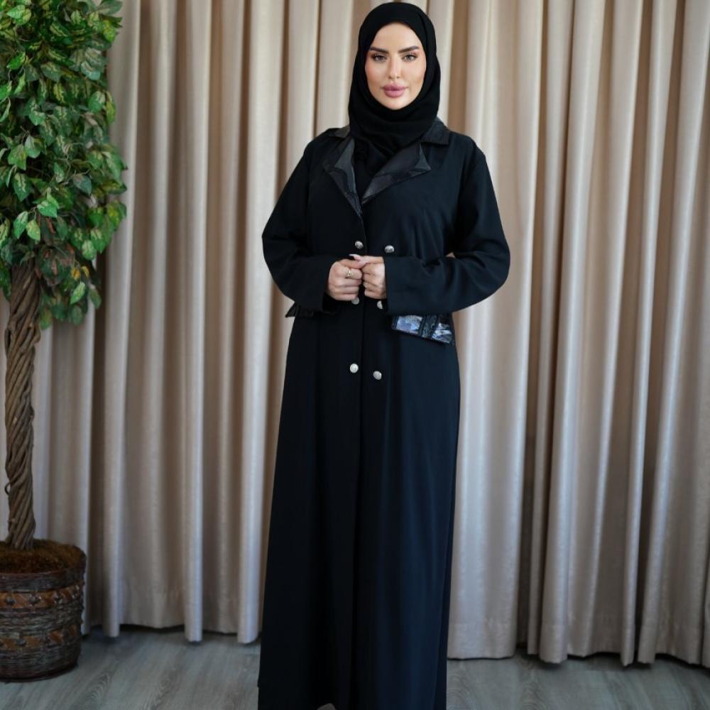 القماش: تجمع العباية بين القماش المطفي واللمسات اللامعة لإضافة تباين جذاب.